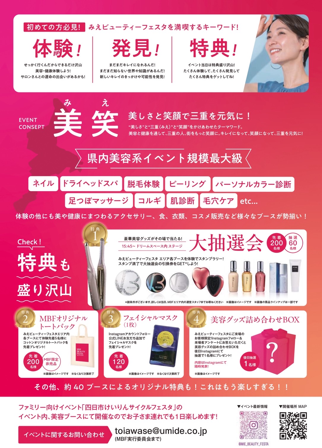 当日は、三重県内の美容のプロが40ブース出展いたします。