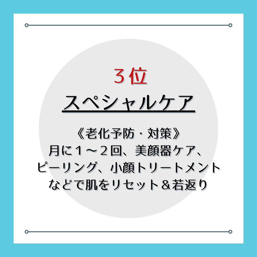 このようなスペシャルケアを定期的に行うことで、肌の状態を整えると共にエイジング効果もググッとアップします。